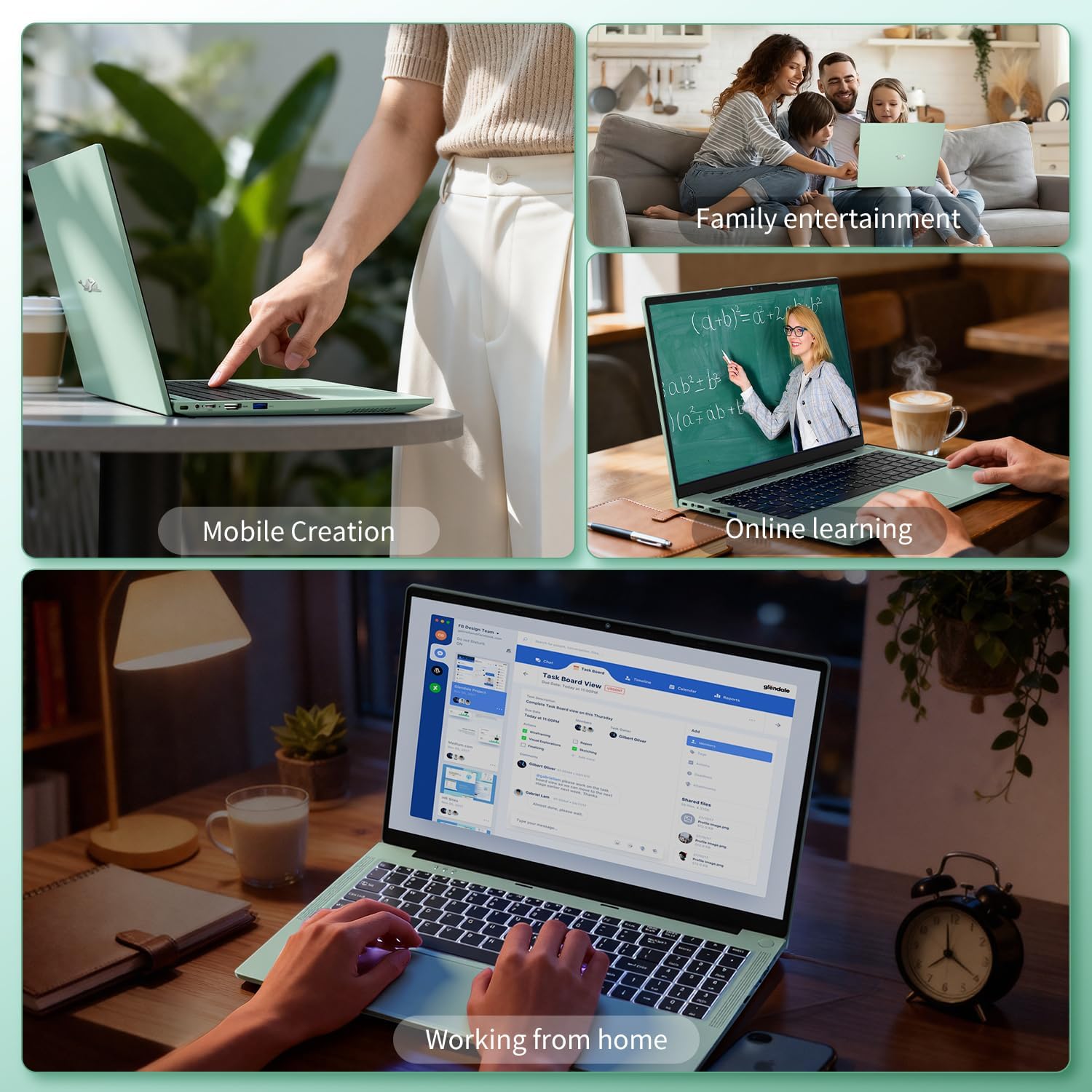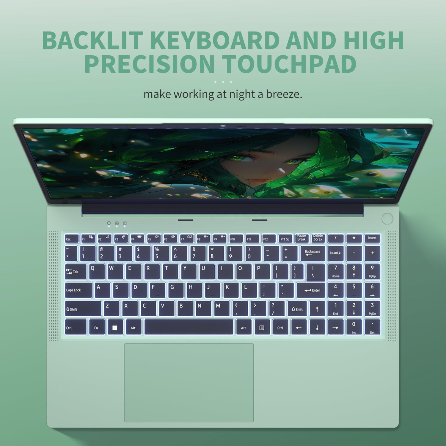 MOONFISH Laptop Computer, 15.6 Inch Lap Top Pc Window 11 Pro, 16GB RAM 512GB SSD, 13th Gen N150 Processor(up to 3.6GHz), Backlit Keyboard, FHD 1920 * 1080, Office 365, Business, Student, Green